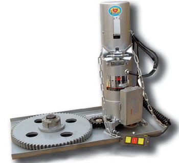 Este equipo se acopla a los ejes de las cortinas por medio de engranaje y contramarcha, dandole movimiento con un piƱon de salida.